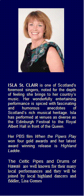 The Caledonian Society of Hawaii in conjunction with The Celtic Pipes and Drums of Hawaii, The Royal Scottish Country Dance Society, and The Saint Andrew Society of Hawaii Present: The Songs and Music of Scotland